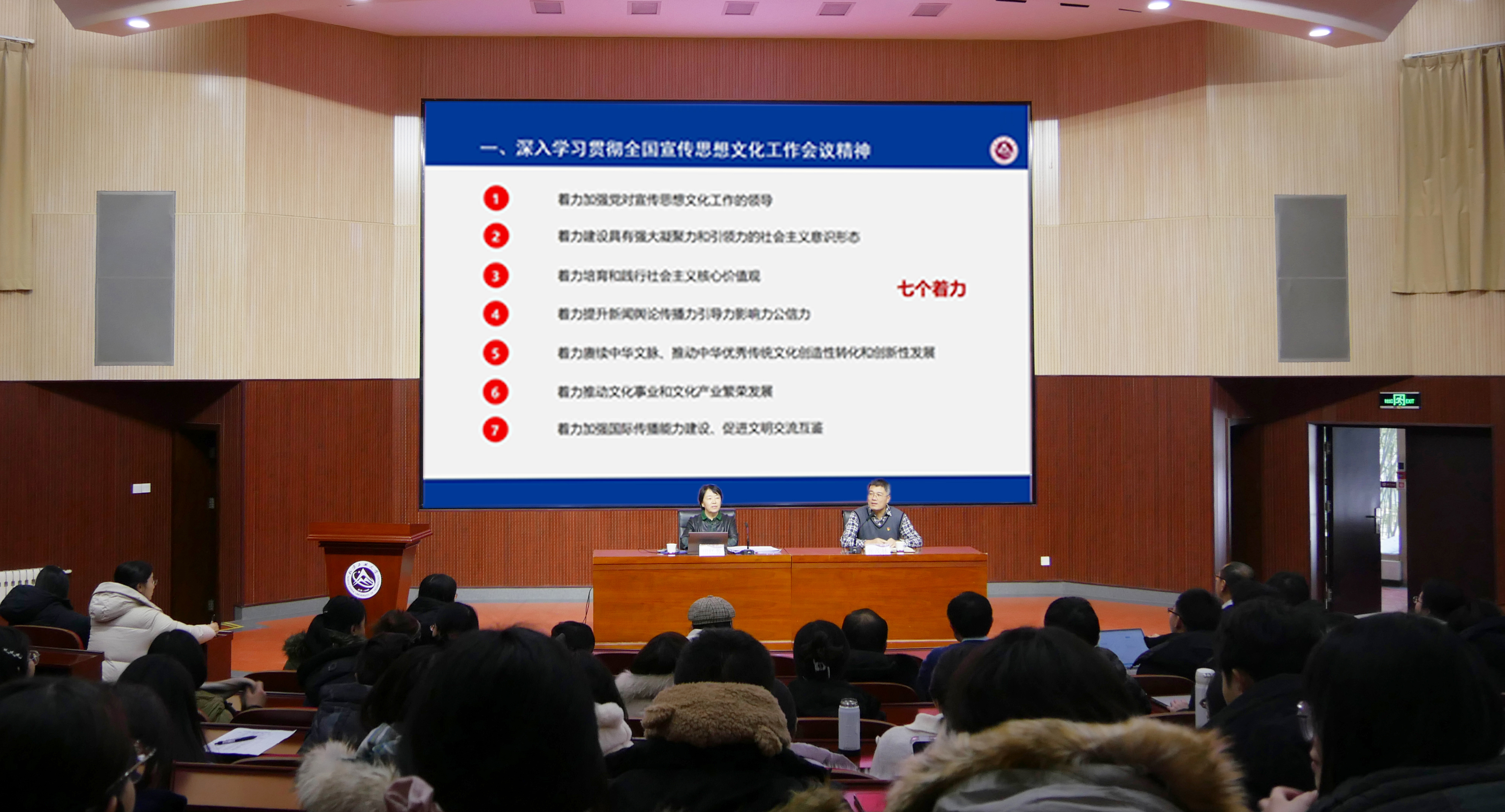 为深入学习贯彻习近平文化思想,坚持以党的创新理论赋能马克思主义学院事业发展,12月21日,校党委副书记田红芳以“深入学习习近平文化思想做好新时代宣传思想文化工作”为题,为马克思主义学院全体师生讲授了一堂专题党课。党课报告会由学院党委书记张茂林主持。田红芳结合全国、北京市宣传思想文化工作会议精神,深入阐释了习近平文化思想的理论要义和实践意义。她指出,习近平文化思想是新时代党领导文化建设的重大成果,是...