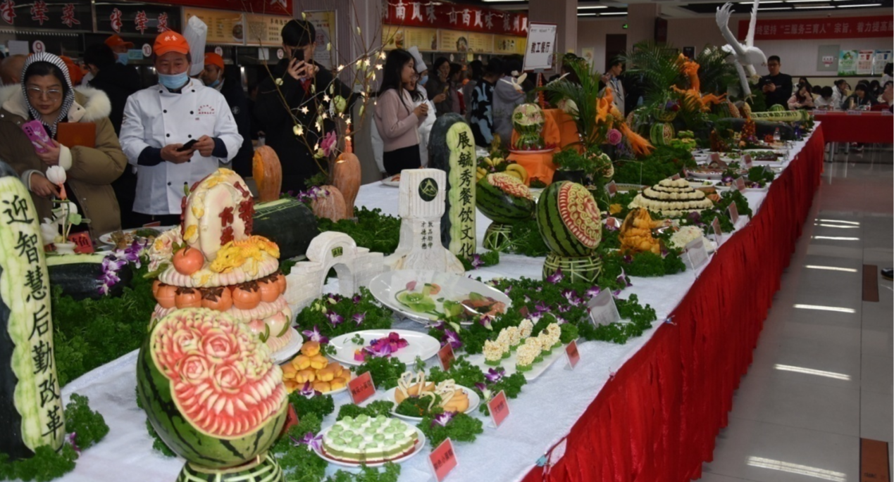 12月28日,饮食服务中心在毓秀餐厅二层举办“第二十一届饮食文化节”学生厨艺创新暨员工烹饪技能大赛。校党委副书记田红芳、史贞军,后勤部门干部员工及学生百余人参加活动。大赛以“健康、文明、节约”为主题,共分学生组厨艺创新比赛、食堂组厨艺展示比赛(展台)、专业组厨工比赛、专业组厨师烹饪技能比赛四个项目。共有学生10支代表队43名同学和各食堂10支代表队32名选手参赛;自办伙食堂、合作办伙食堂共10个厨艺展台参展...