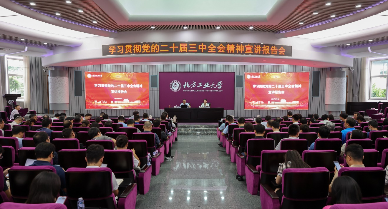 9月4日下午,学校在广学楼报告厅举行学习贯彻党的二十届三中全会精神宣讲报告会。党委书记刘军以《深入学习贯彻党的二十届三中全会精神推动事业高质量发展》为题,从深刻领会党的二十届三中全会的时代意义、全面准确理解全会《决定》重要内容、奋力谱写中国式现代化的北方工大篇章三个方面进行深入宣讲。宣讲会由党委副书记田红芳主持。刘军对改革开放以来党的重要会议进行对比分析,指出要从应时代之“变”,行措施之“细”,...