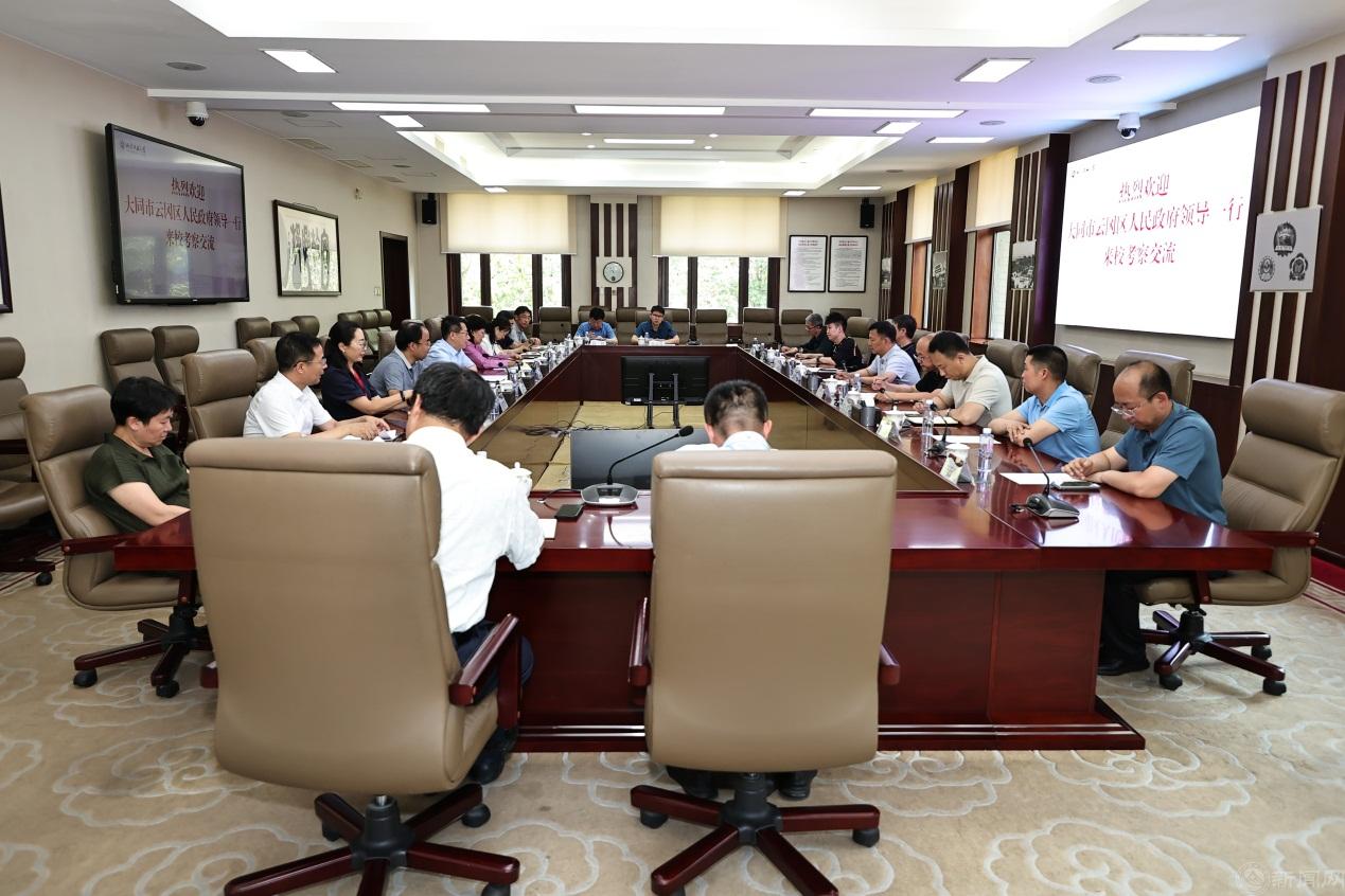 近日,大同市云冈区副区长王纵驰一行来校考察调研,就深化务实校地合作,推动共同发展进行交流研讨。党委书记缪劲翔出席座谈会,党委常委、副校长王力参加座谈会。座谈会由党委常委、副校长栗苹主持。