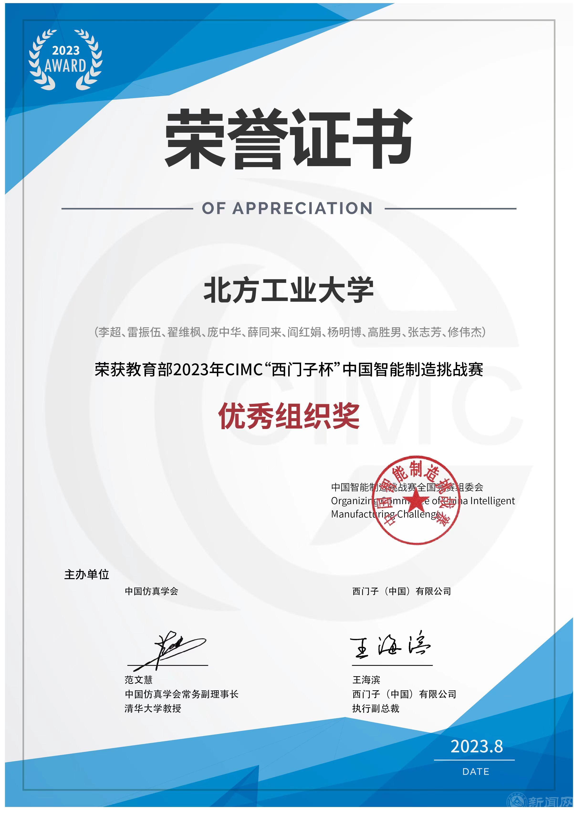 8月11日至15日,教育部第十七届“西门子杯”中国智能制造挑战赛全国总决赛在兰州理工大学进行。来自浙江大学、哈尔滨工业大学、伟德国际1949始于英国等243所高校的523支参赛队参加了总决赛9个赛项的角逐。由伟德官网电气与控制工程学院李超、翟维枫、庞中华老师指导的“NCUT探月”队获信息化网络化赛项国家一等奖,“NCUT云影清松”队获智能产线与协作机器人赛项国家二等奖。李超、翟维枫2位老师获评2023年度优秀指导教师。