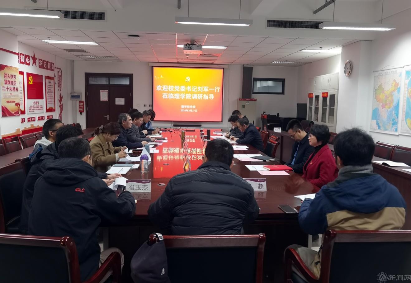 3月27日,刘军来到理学院,他强调,理学院在基础研究和体育育人等方面为学校发展作出重要贡献。希望学院以制定新版培养方案和召开学校教育教学工作会议精神为契机,借势推动专业转型;抓住学生综合素质培养提升的机会,推动广泛开展群体性体育运动,助力学生身体素质提升;抓住学校专业学院重组的机会,实现减量发展和转型发展。刘军要求学院要加强党的建设,持续巩固拓展主题教育成果,推进学院全面发展;抓好公共基础课教学和体育课程建设,回答好“新课怎么办”“统计学怎么转”等现实问题;要做好人事聘任和师资队伍规划建设,强化人才支撑和重点发展方向,在减量当中提质增效。
