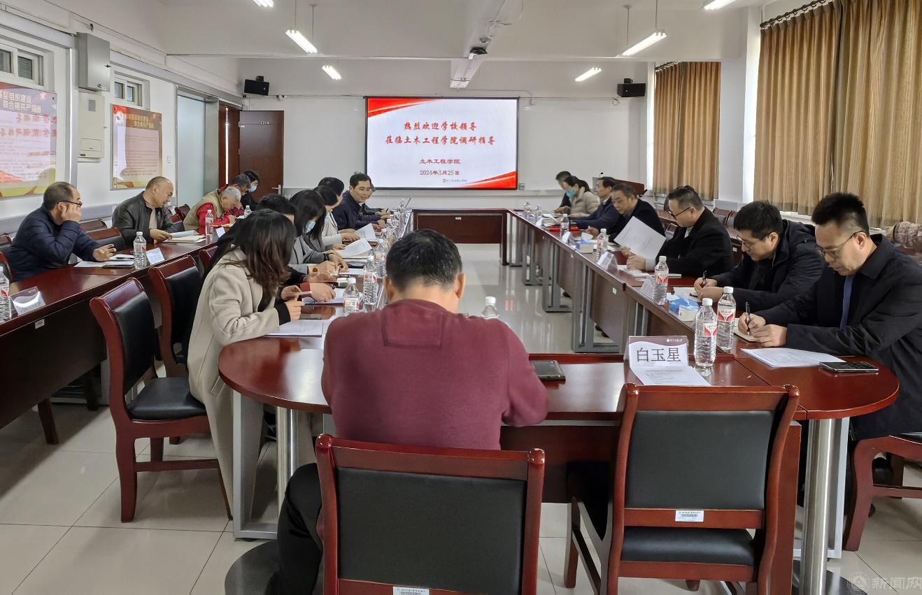 3月25日,刘军来到土木工程学院,他对学院发展提出“固底板、补短板、强长板”的总体要求,希望学院持续加强党建引领,深入推进学习贯彻习近平新时代中国特色社会主义思想主题教育常态化、长效化,准确把握2024年形势任务,跳出学院看发展、跳出教育看教育、站在学校看学院。刘军强调,要把学科建设和专业转型发展作为重点抓手,立足北京,服务城市更新改造,做大做精学院在韧性城市建设和新兴风险防控相关领域的学科优势,精准服务首都和京津冀协同发展。